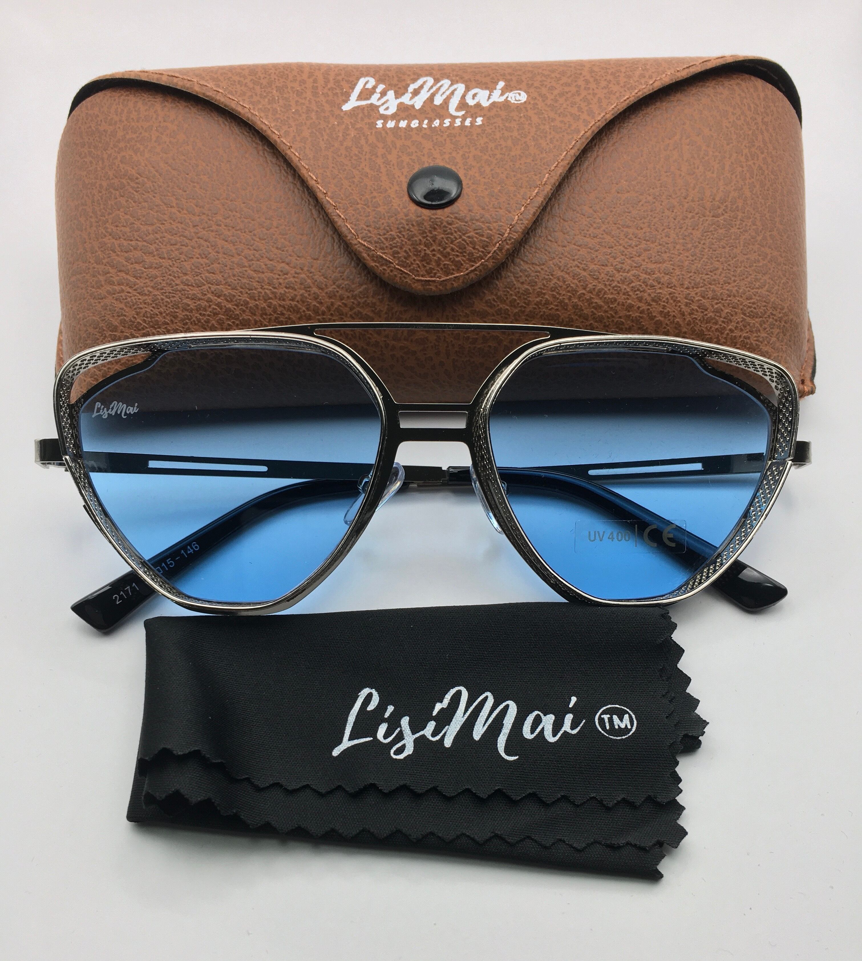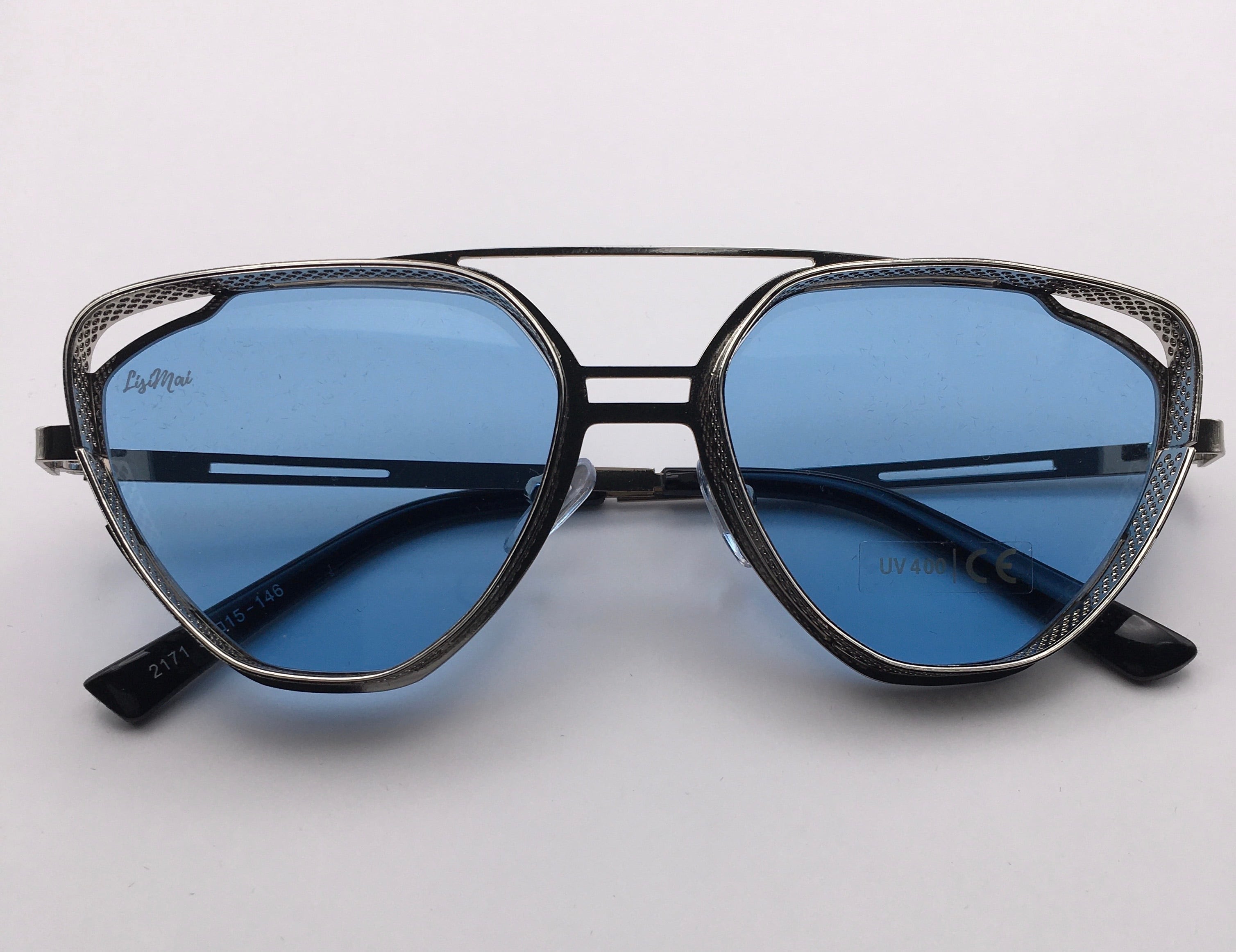 LisiMaiスチームパンクスタイルのサングラス、UV400ブルー